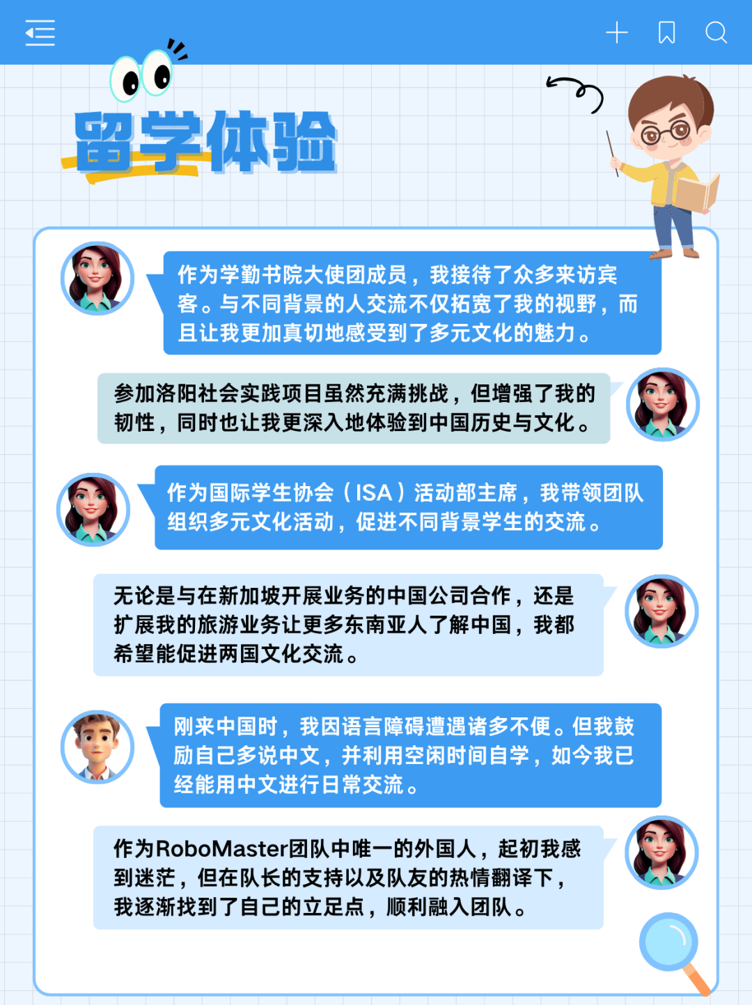 加入国际学生协会两年以来,Bryan从文案编辑成长为部门主席。他带领团队组织各类活动,为国际学生提供支持。他发起并策划了中文课,助力国际学生更好地融入中国。