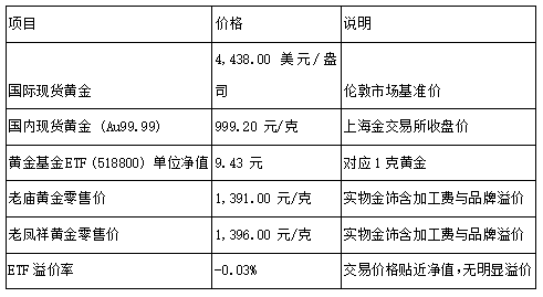 黄金基金ETF(518800)单位净值于2026年1月8日为9.43元,与实物黄金价格高度联动,1克ETF份额对应约1克黄金的实物价值,投资效率显著优于高溢价的实物金饰。