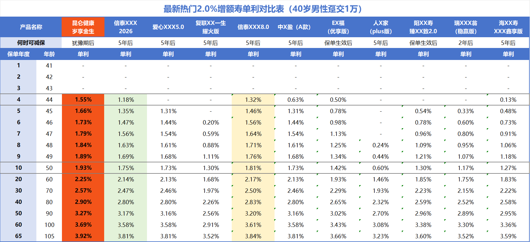 :其保费的一部分用于支付护理保障的成本。如果您已有非常充足的长护险保障,且追求极致的储蓄效率,可纯对比不同增额寿险的现金价值。