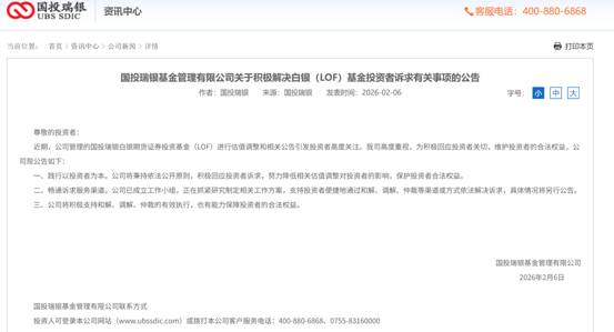 2026-02-16188金宝博,金宝博官方网站,金宝博APP下载2月6日收盘后,国投瑞银基金管理有限公司(简称“国投瑞银基金”)在官网发布公告称,近期,公司管理的国投瑞银白银期货证券投资基金(LOF)进行估值调整和相关公告引发投资者高度关注。为积极回应投资者关切,维护投资者的合法权益,公司已成立工作小组,正在抓紧研究制定相关工作方案,支持投资者便捷地通过和解、调解、仲裁等渠道或方式依法解决诉求,具体情况将另行公告。