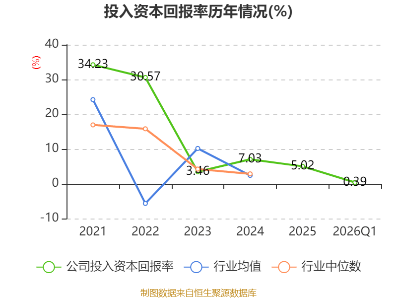 盈利能力方面, 2026年一季度公司加权平均净资产收益率为0.49%,同比下降1.1个百分点。公司2026年第一季度投入资本回报率为0.39%,较上年同期下降1.11个百分点。